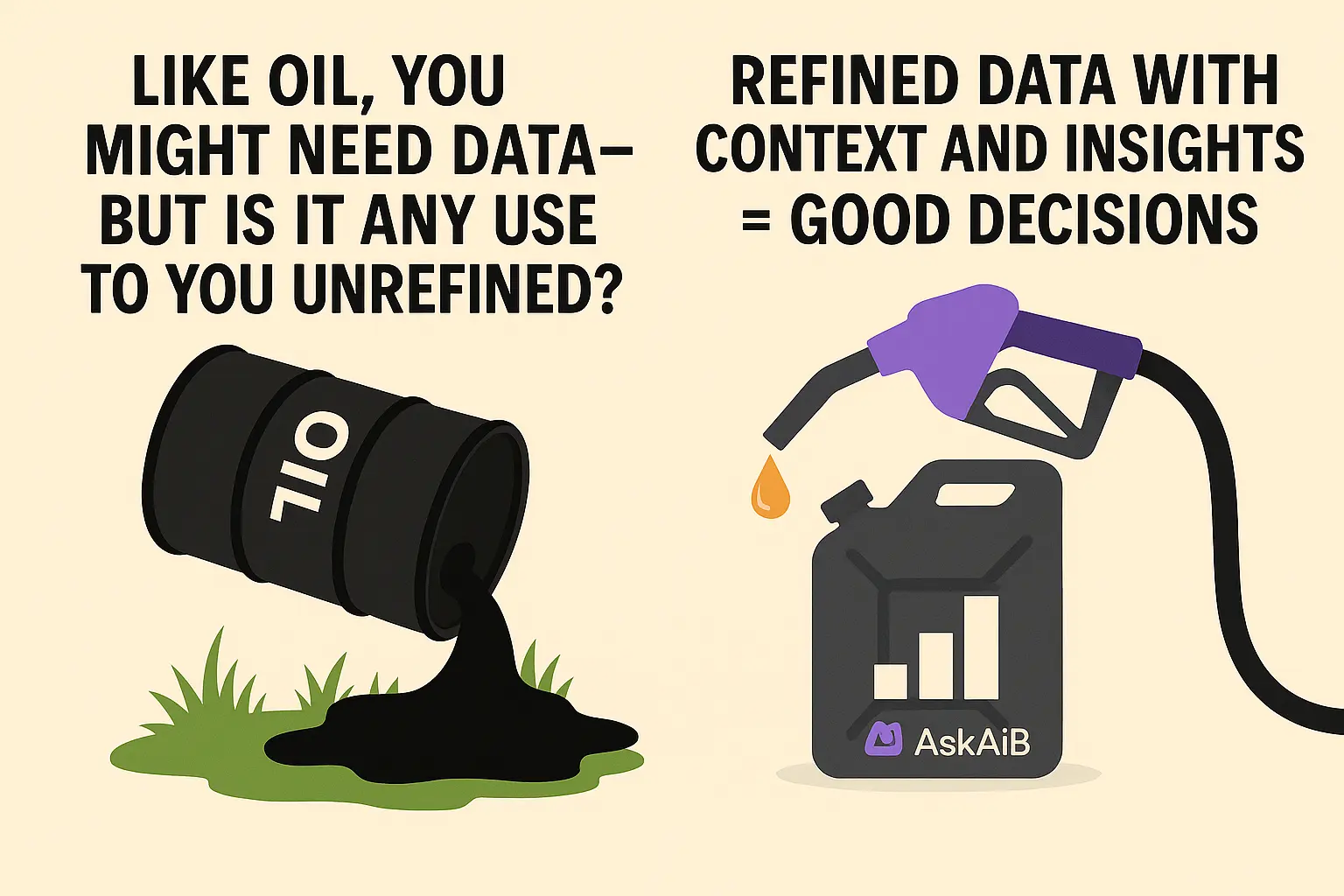 Raw, unrefined and unfiltered data = oil dumped on your lawn.