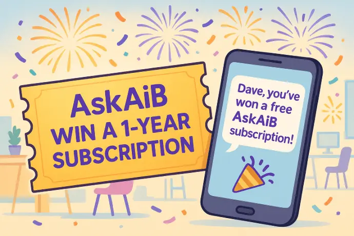 - Data & publicity: By entering, you consent to AskAiB processing your details to administer the giveaway in line with our Privacy Policy and, if you win, to reasonable publicity (org name/logo/case study) unless you opt out in writing.