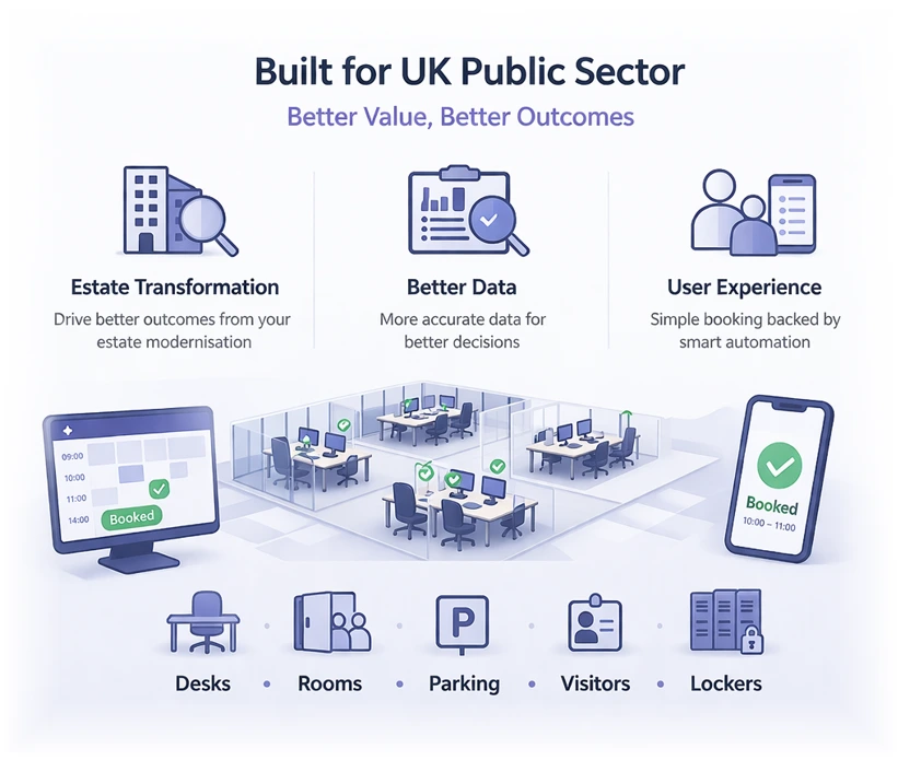 UK public sector organisations are under pressure to reduce estate costs, optimise space, and support flexible working across departments.