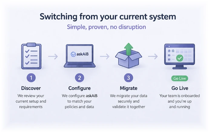 askAiB is a simple, low-cost booking system designed specifically to support these challenges, combining automation, accurate data, and a user experience people actually adopt.