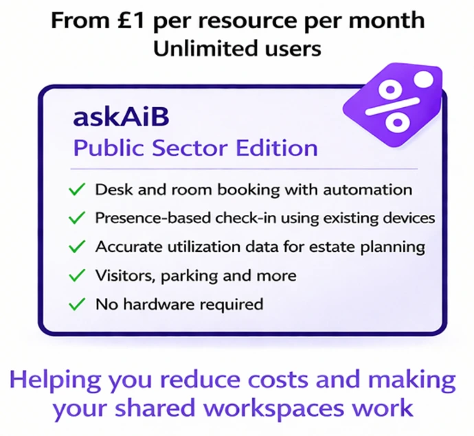 We can discuss your current setup and look at whether askAiB can help you make sure that your system is supporting your people to get the most out of their shared workspaces, and you have the right data to make the right decisions as public sector estate transformation continues at pace.