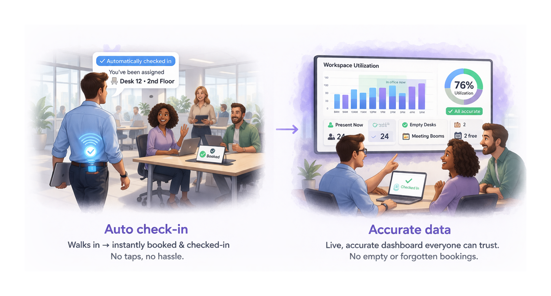 A simple, M365 integrated, intuitive booking system with higher adoption through automated, frictionless booking