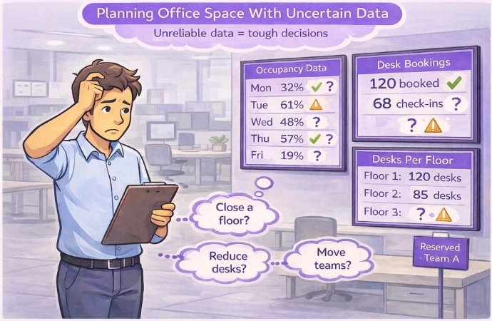 Plan how to share desks, rooms, and office space more effecitvely with real data